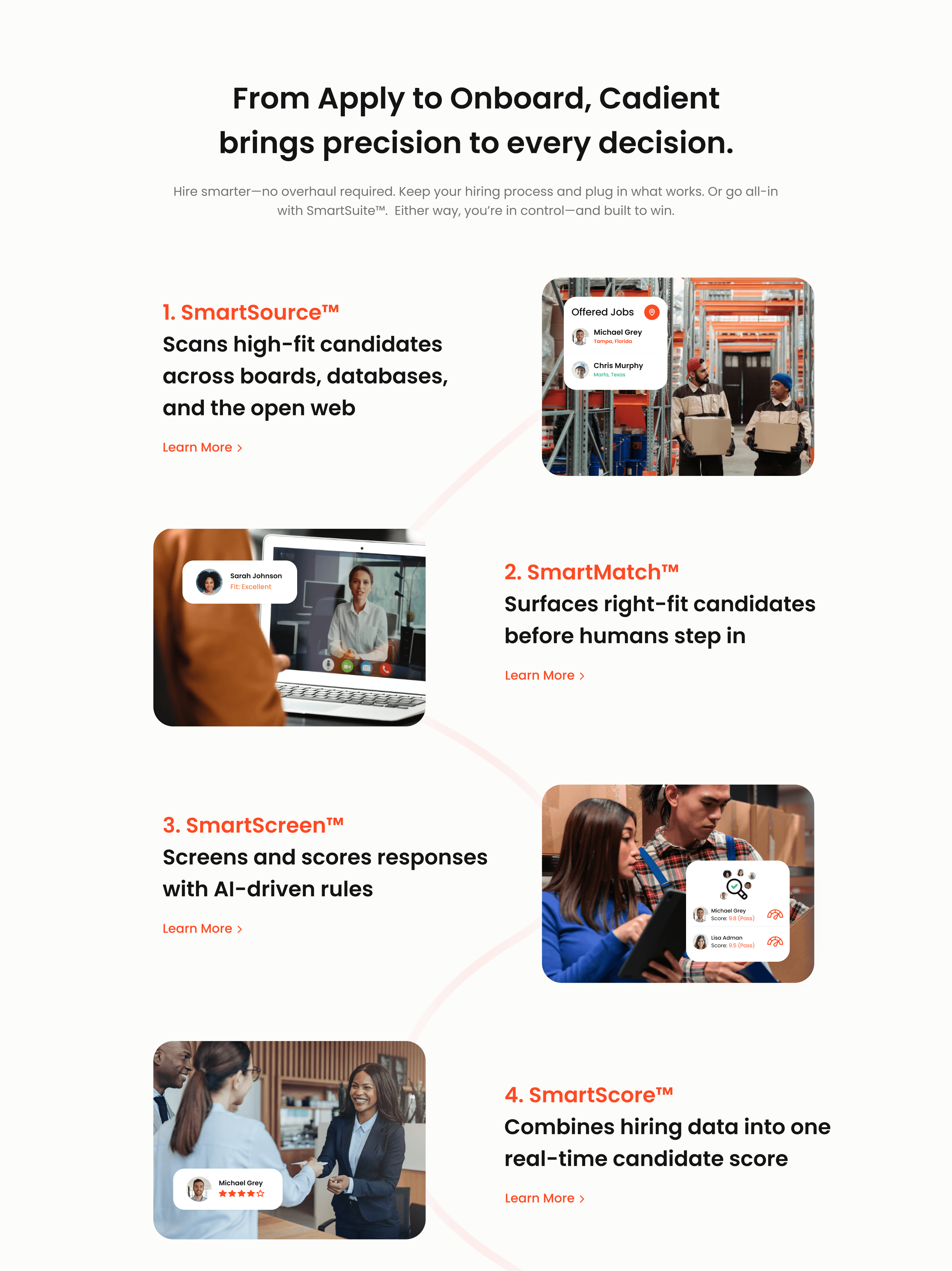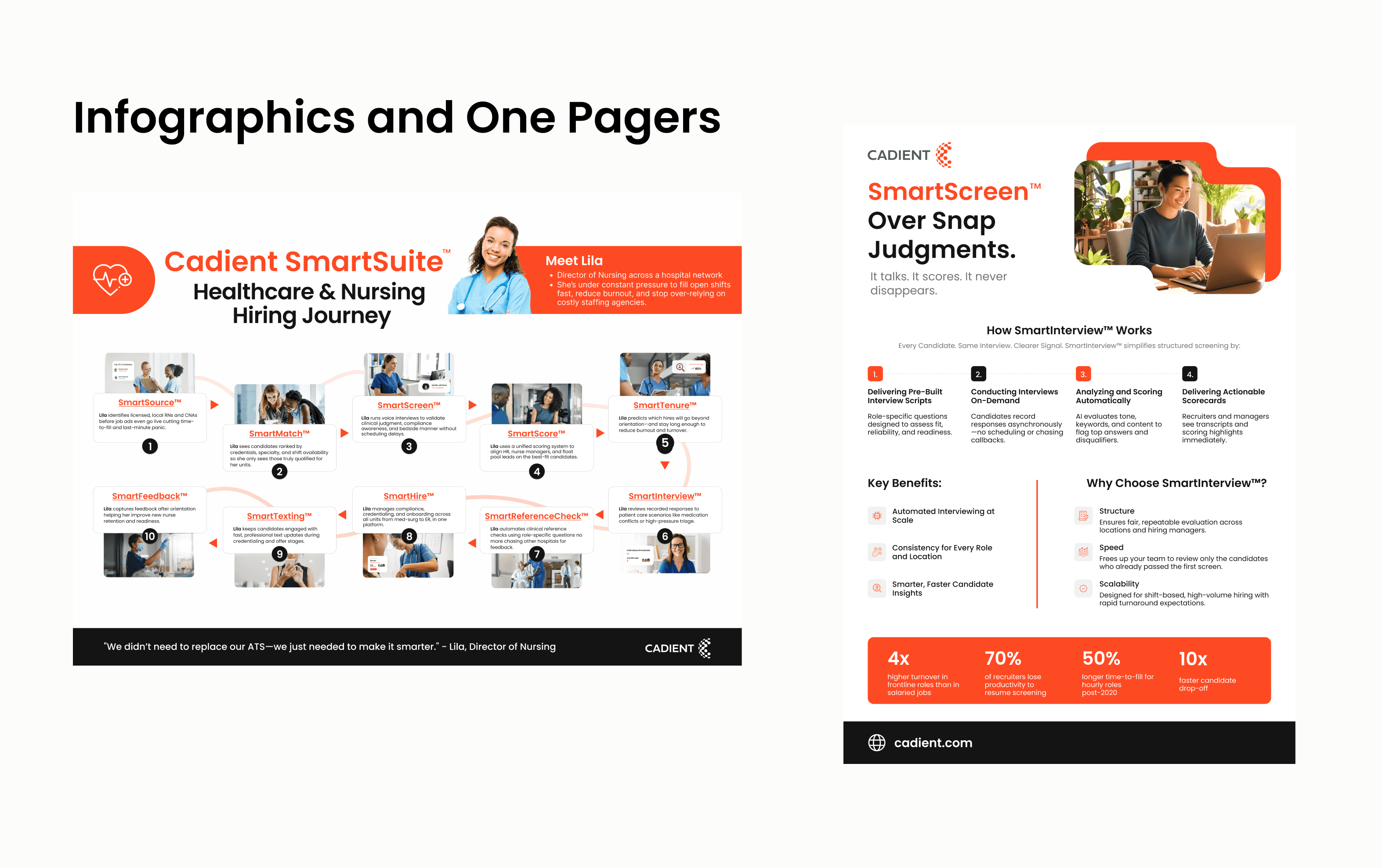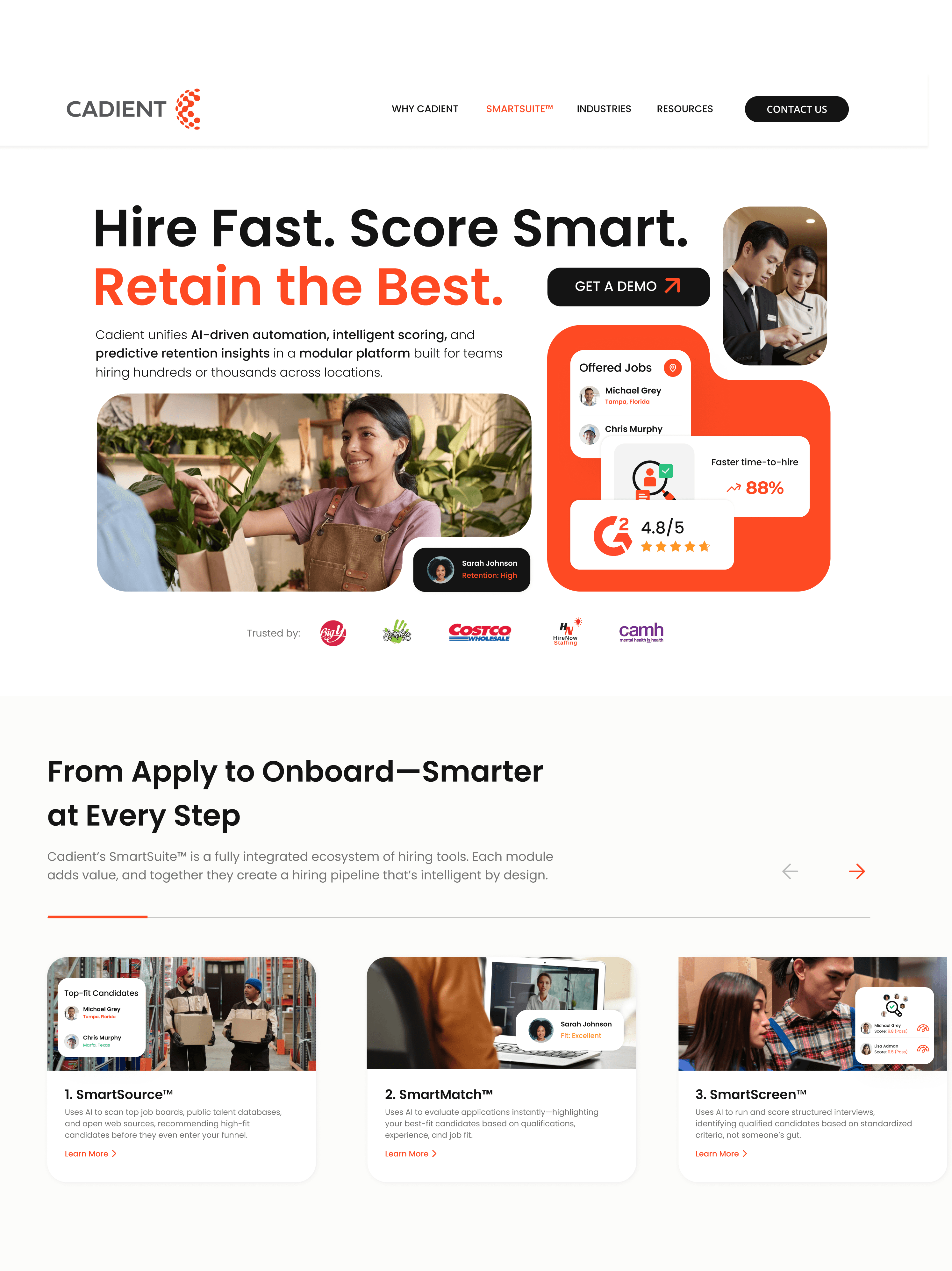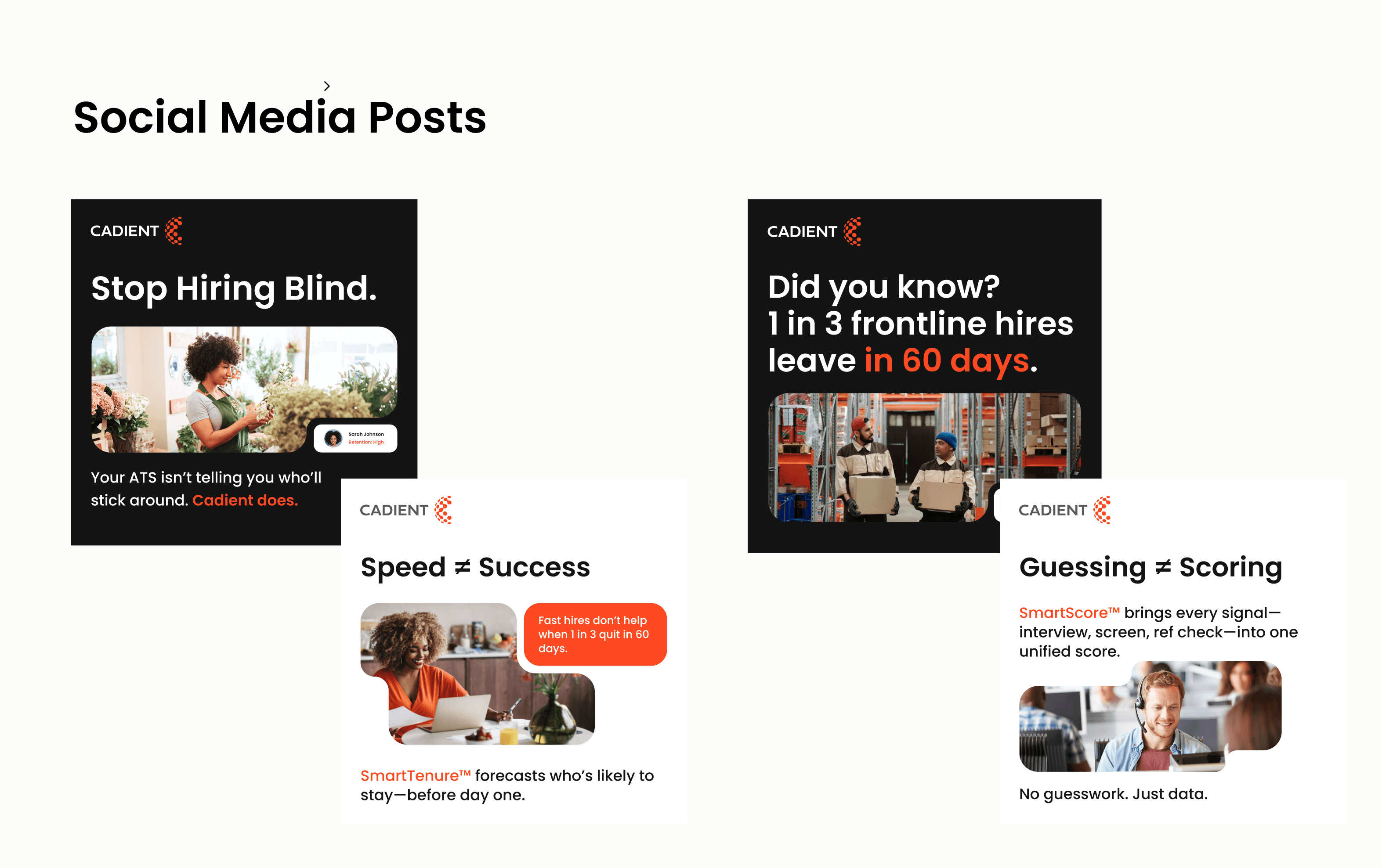 I led a full rebrand and repositioning for Cadient, an AI-driven hiring platform focused on high-volume recruiting. The goal was to clearly communicate trust, scale, and speed for enterprise clients while still keeping the experience human and accessible for candidates.